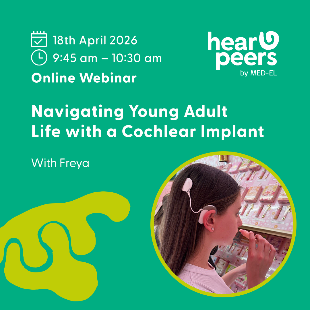 Join Hearpeers by MED‑EL for an inspiring live webinar featuring Freya, a young adult with a cochlear implant who’s ready to share her story with honesty and positivity. Expect a relatable, real‑world perspective on navigating young adult life with a cochlear implant. There will be a Q&A session with Freya, who will be answering any questions you may have about life as a young adult with a cochlear implant.